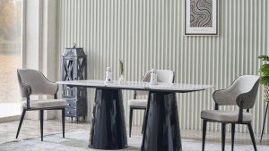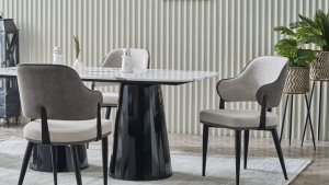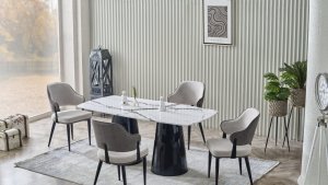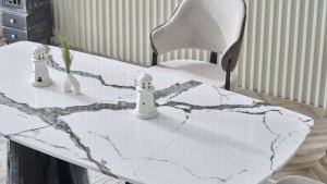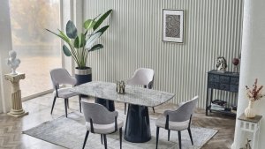 Mit dem Tischset Antique Marbleite können Sie Ihr Zuhause nach Ihrem eigenen Geschmack gestalten, denn es bietet eine breite Palette an Farboptionen. Sie können aus 7 verschiedenen statischen Lackfarben für die Tischbeine wählen (mattschwarz, schwarz glänzend, satiniert, rosa, cremefarben, weiß, anthrazit), um sie an die Einrichtung Ihres Hauses anzupassen. Sie können auch ein einzigartiges Esszimmer oder Gästezimmer gestalten, indem Sie die Stühle in 3 verschiedenen Stoffarten und 23 verschiedenen Farboptionen individuell gestalten.