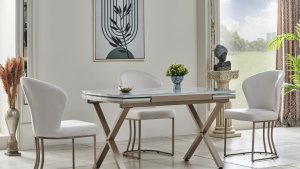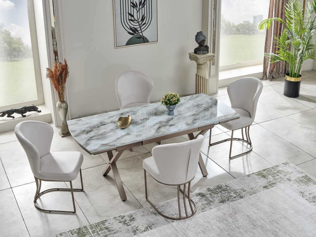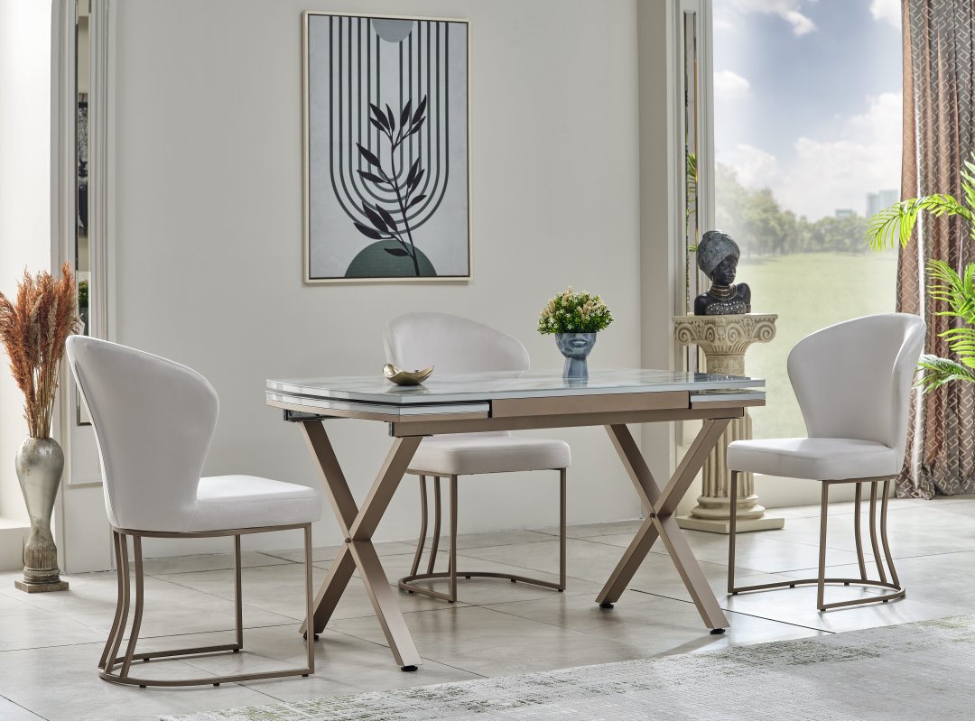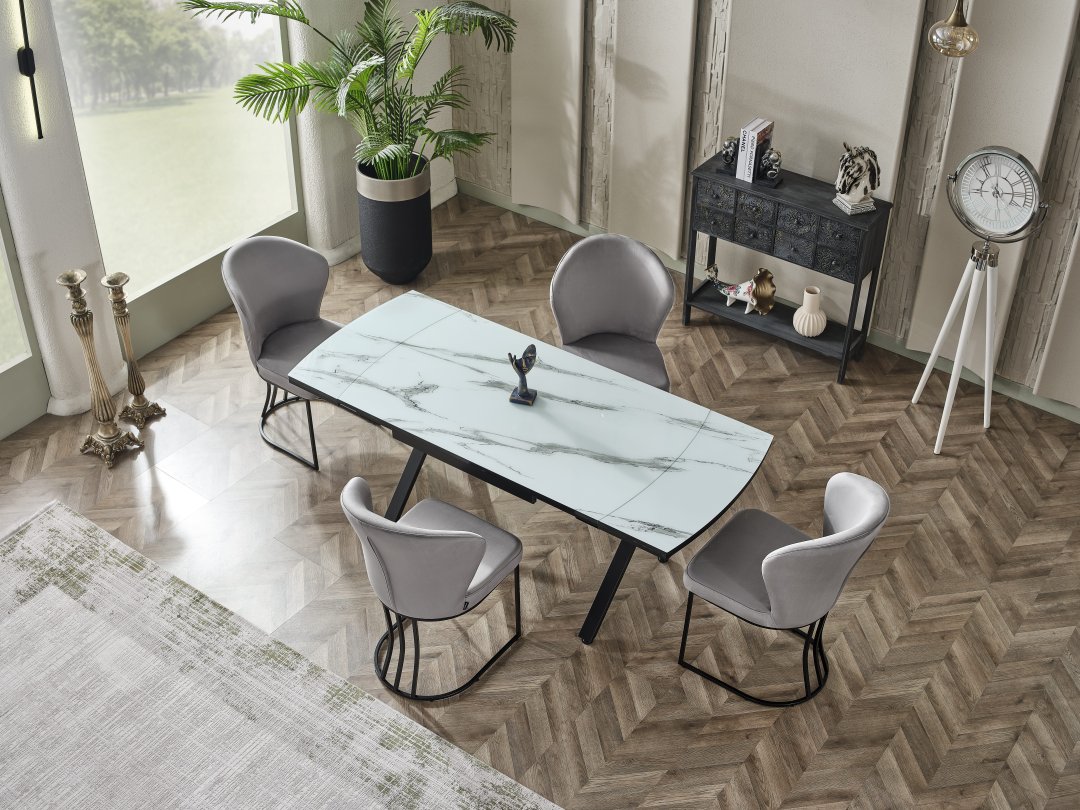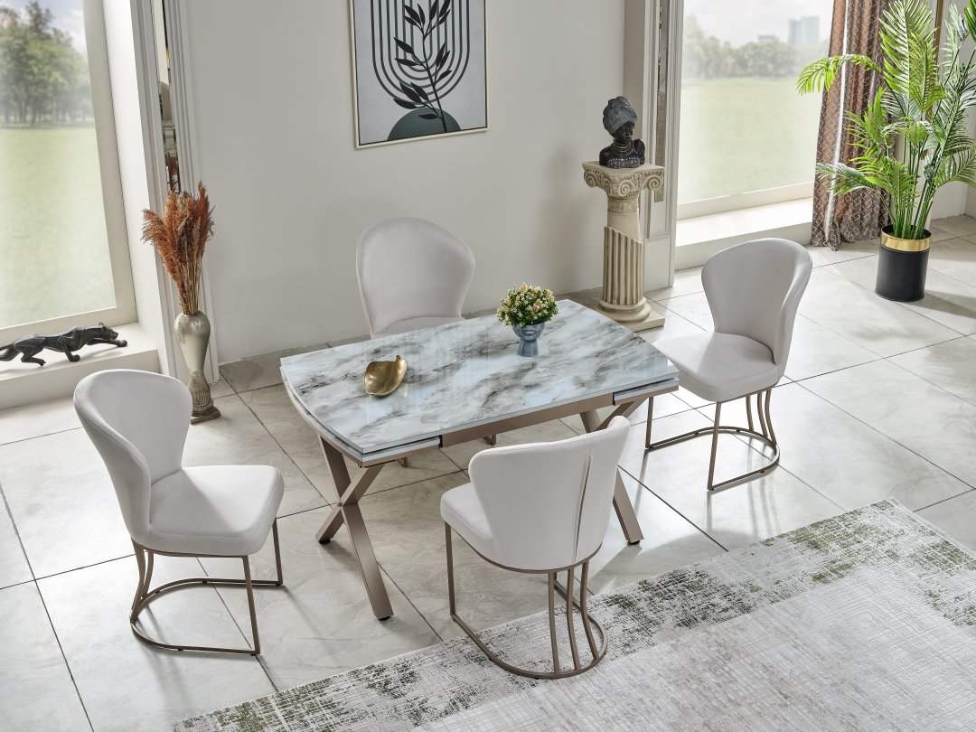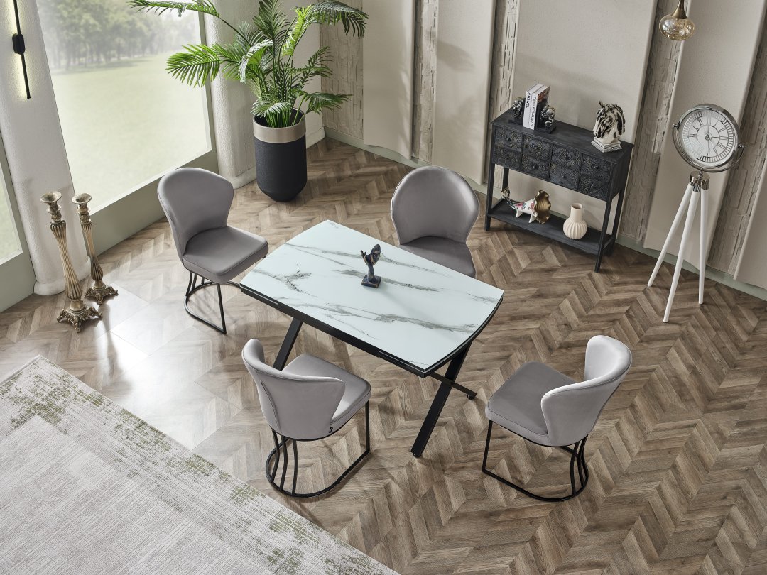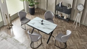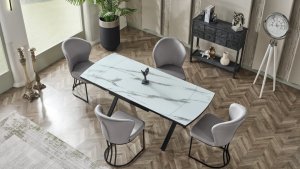 Vega Table Set offers customization options that will adapt to the atmosphere of your home. The gold-plated and chrome-plated alternatives on the table legs add a stylish sparkle to the durability of the table, while allowing you to appeal to different decoration styles. You can also add a unique touch to your living space by designing the table legs in the color of your choice with 7 different static paint color options.