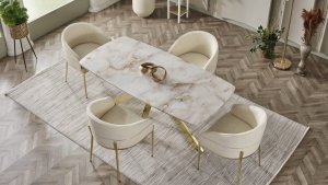 Afra Mermerit Masa Takımı, tasarım detayları ile kendi tarzınızı yansıtmanıza olanak tanıyor. Ayaklarda sunulan gold kaplama ve krom kaplama seçenekleri, masanın genel görünümünü zenginleştirirken, farklı tarzlara hitap ediyor. Ayrıca, 7 farklı static boya renk seçeneği (mat siyah, parlak siyah, saten, rose, krem, beyaz ve antrasit) ile masa ayaklarını dilediğiniz renkte tasarlayarak, evinizin dekorasyonuna uyum sağlayabilirsiniz.